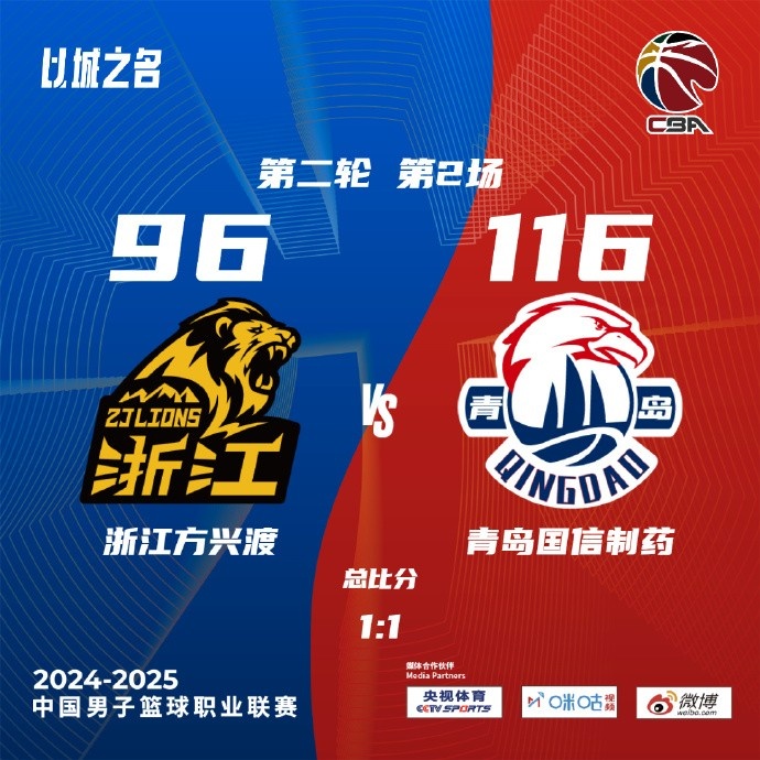 4月15日讯 广厦男篮今天在主场96比116不敌青岛男篮,被对手将系列赛扳成1比1平。