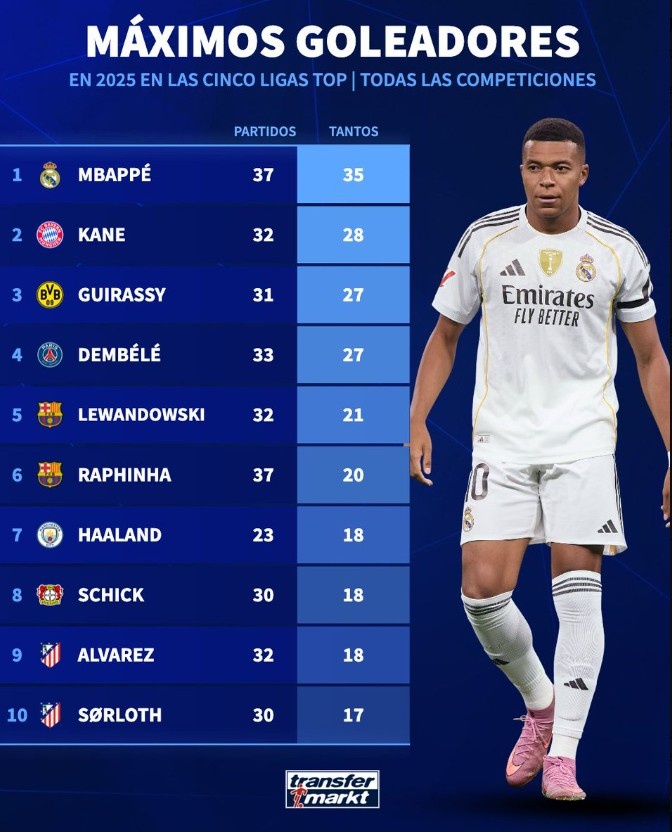 9月20日讯 进入2025年,皇马球星姆巴佩展示出了非常出色的状态,他在37场各项赛事比赛中打进35球,位居五大联赛射手榜榜首。